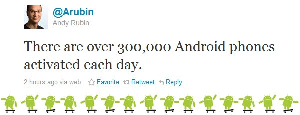 Android's growth has been on the up for a while now, indeed that's a pretty big understatement given just how fast it's moving. Andy Rubin, Android's head chef, has provided the world with another impressive figure concerning the little green robot that could ... 300,000 activations a day.